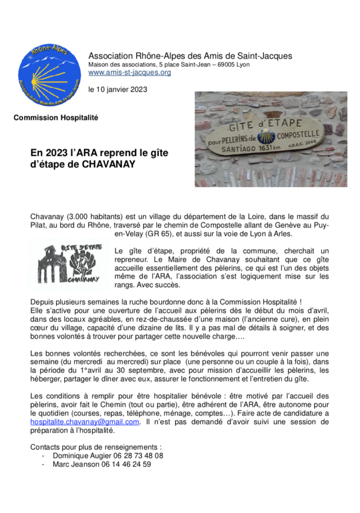Avril 2023 : ouverture du Gîte de Chavanay