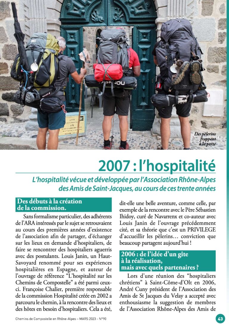 La Commission "Hospitalité" de Compostelle en Rhône-alpes : son histoire....